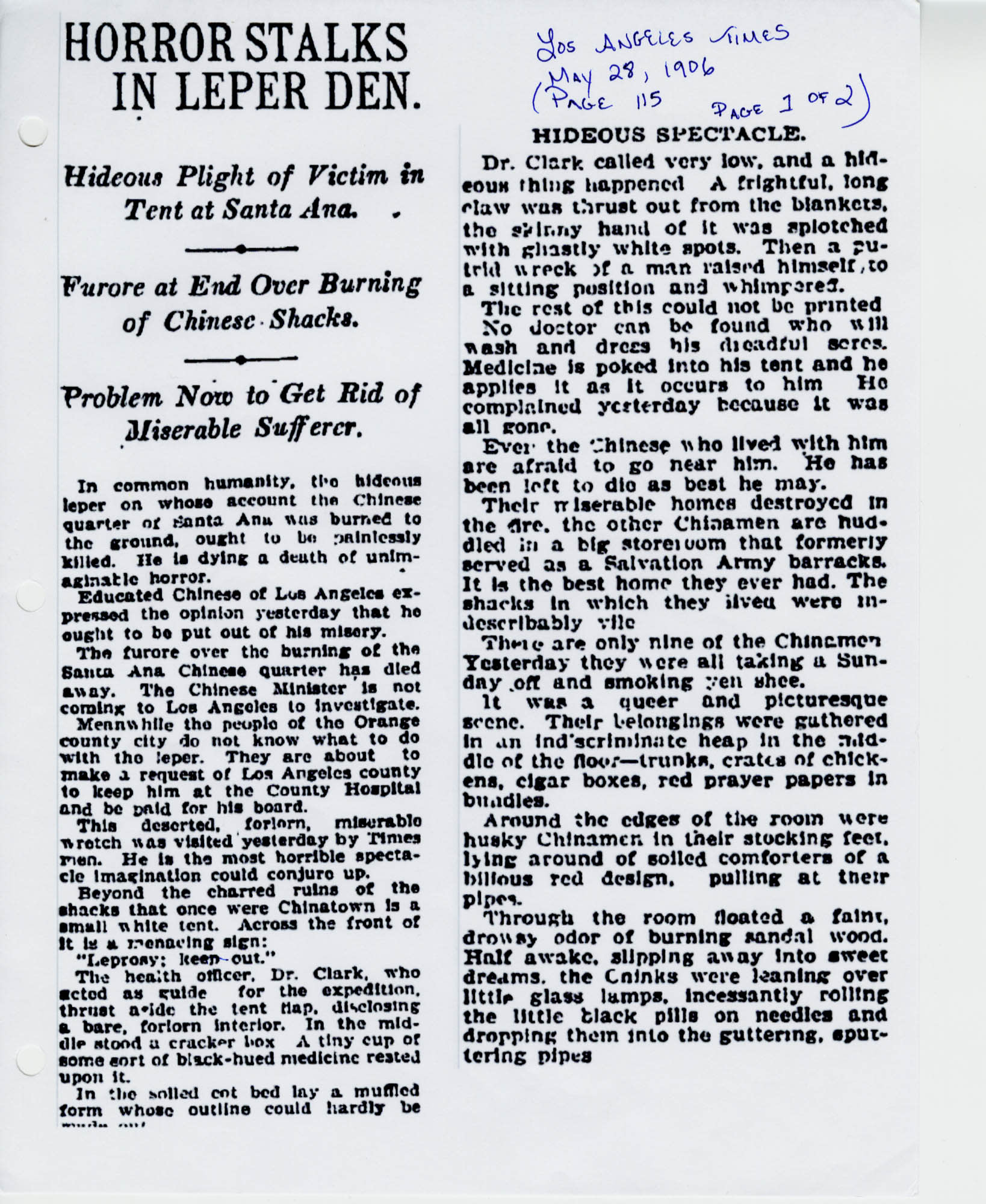 | Arellano, Gustavo. “A Racist Mob Burned Santa Ana’s Chinatown to the Ground. It Still Serves as a Lesson.” Los Angeles Times, March 21, 2021. https://www.latimes.com/california/story/2021-03-18/lost-santa-ana-chinatown-shows-la-anti-asian-violence-legacy | |