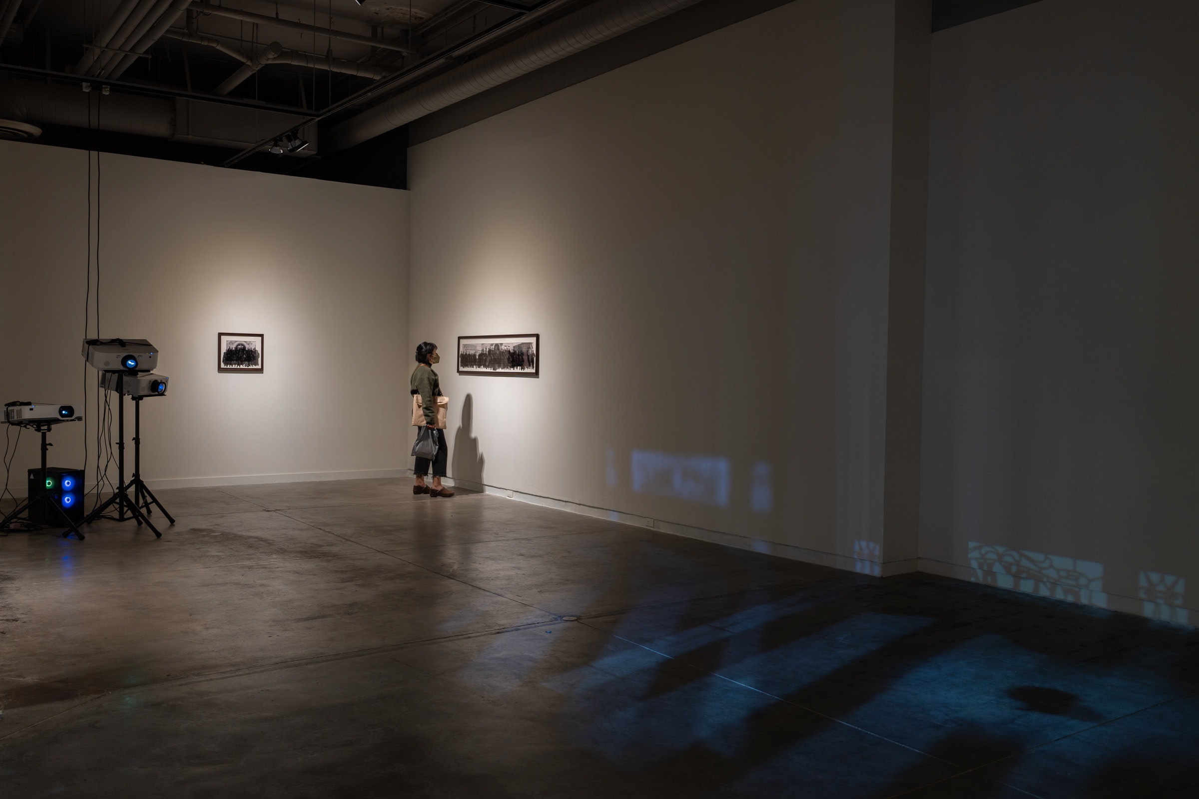 Specter in the Gate presents an opportunity to delve into the historical progression of political, economic, and cultural machines, anchoring its narrative in a pivotal yet often forgotten event: the 1906 burning of Chinatown, located adjacent to the former Santa Ana City Hall. This critical incident not only exemplifies the extensive history of biased urban planning and development practices in California but also serves as a poignant reminder of how collective memory and historical narratives are shaped and reshaped over time. The work of Hings Lim is driven by the utilization and notion of perspective machines – technology such as cameras, projectors, and mappings. These mediums extend beyond mere technological use; they act as conduits through which the multifaceted layers of history and memory are examined and presented. By intertwining technological innovation with societal structures, this interplay between technology, history, and memory conjures the tangible and intangible legacies that span time, linking past, present, and future, with a body of works consisting of objects, photographs, moving images, and real-time projection mapping installation.