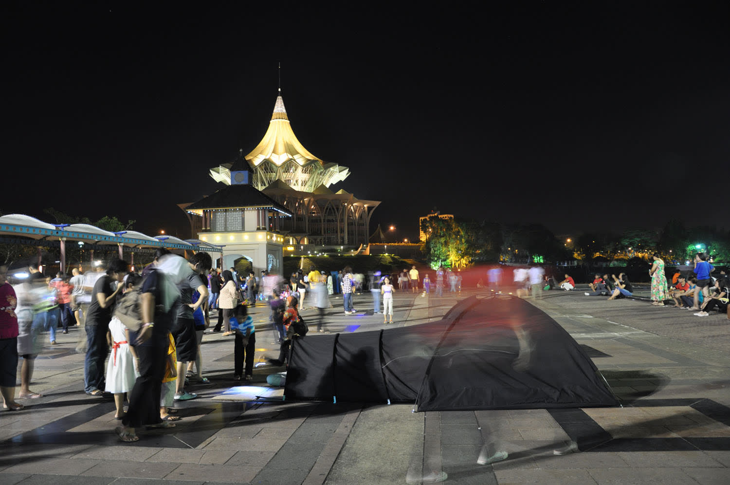 Installed at six public locations around Kuching area in Sarawak, the project attempts to instigate dialogues, conversations, and discussions in the public. This is a discernible recount of the democracy revolution movement in 2012, where numerous demonstrations and occupations took place from the Arab Spring to the Occupy Wall Street as well as Bersih 2.0 rally in Malaysia. The installation confronts the public and alludes to the urgency of social and political instigation of our time. It may deem as an occupation or a street survey, but moreover a situation where communal relations emerge.
